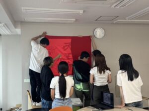 毎年恒例となっているのが、チームの士気を高めるための"応援旗"の作成!