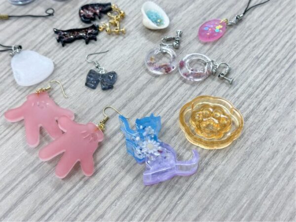 レジン液やラメ等を使ってピアスやイヤリングを作成しました!
