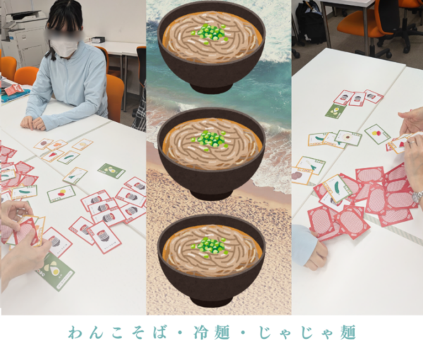 この三大麺の材料を神経衰弱の要領で探しに行き