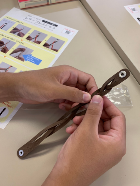 プロの先生をお呼びして、今回は組みひもを使った皮のアクセサリー作りに挑戦しました!