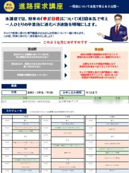 金沢キャンパスでは、進路探求講座を2025年10月1日~3日 開催します!