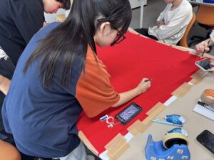 9月に行われる体育祭に向けて、実行委員を中心にコツコツと準備してきた応援旗。