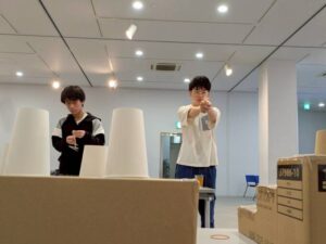 紙飛行機を作ってどこまで飛ぶか競いあったり・・・