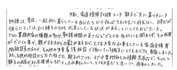 家庭支援専門相談員の大切さを実感し、尊敬いたしました。