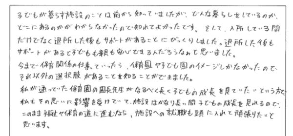 保育園だけでなく施設で働くという選択肢もあると知り、