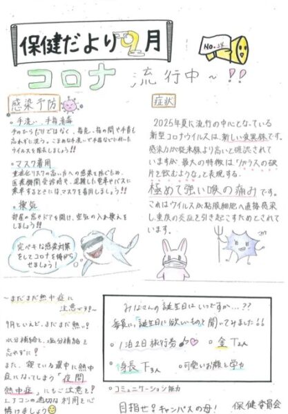 今月の保健だよりには