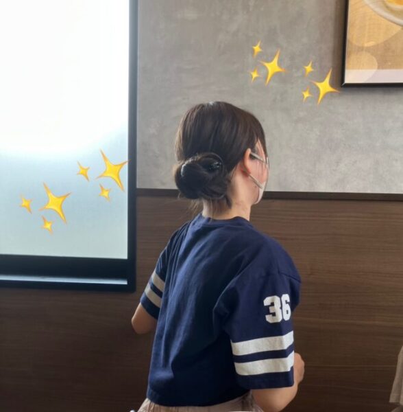 ロングヘアの女子、ラーメンが来る前に気合を入れて髪をまとめます!!