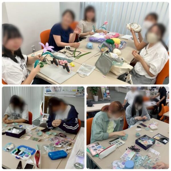 🧶ハンドメイドサークル🧶は、キャンパス内でできる活動で女の子に人気です!ビーズや布、カラフルなアイテムをたくさん並べて、キーホルダーやマスコットなどを作り上げています。ひとりひとりの作ってみたいを形にしてみよう!というコンセプトで、いろいろ作品を作ってみます。器用に手先を動かしながら、会話も生まれ、ほのぼのした女子会のような雰囲気なのが魅力です!