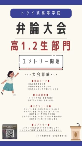 本日は、トライ式高等学院主催の弁論大会(高1・2生部門)開催のお知らせです😊