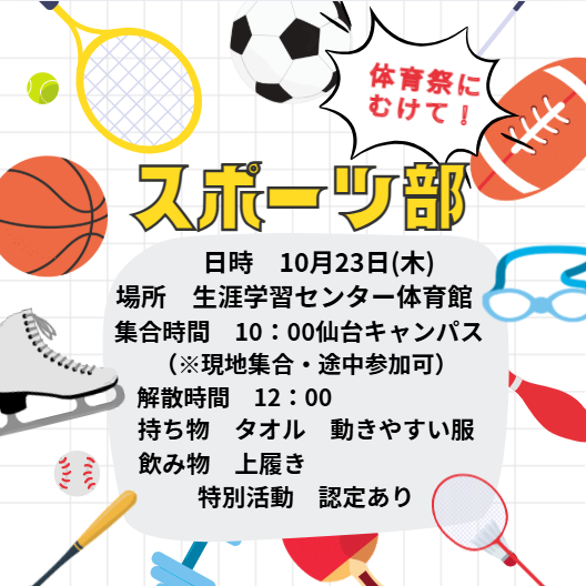10月29日に行われる体育祭にむけて、スポーツ部で体を動かしておきましょう🔥