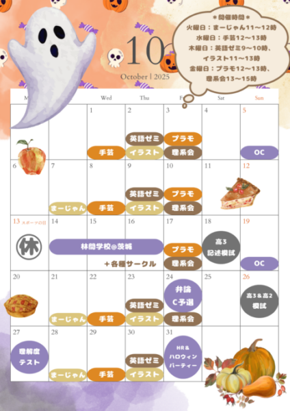 今回は10月のイベントカレンダーが完成したので、盛りだくさんの行事予定と一緒にお伝えしていきます💪