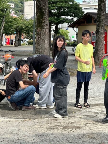 今日はみんなで近くの公園に出かけ、水遊びを楽しみました。朝から気温がぐんぐん上がり、水遊び日和と生徒たちの顔にも笑顔があふれていました☺️