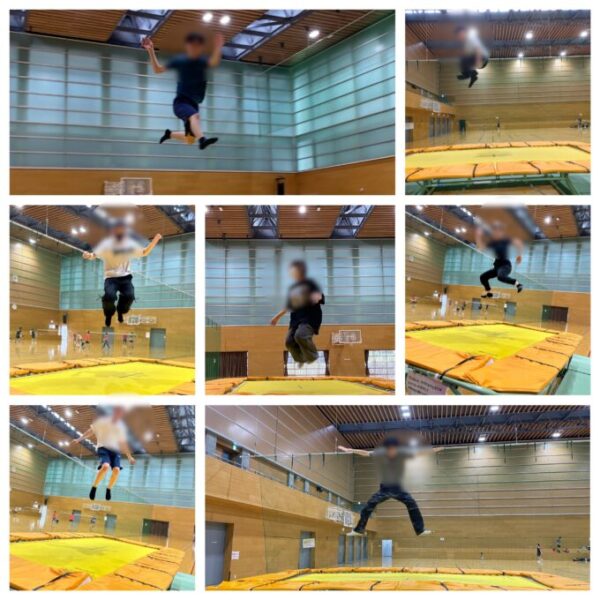 オリンピック競技でもあるトランポリンは同じ場所に着地し続けるだけでも難しく、跳び続けているとかなりの運動量になります💦