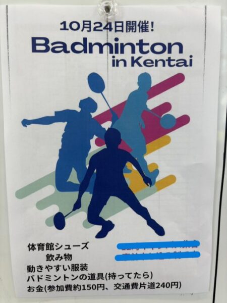 10月24日に開催するバドミントンフェスについてお知らせです☆
