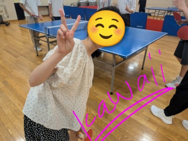 卓球をしたことのない人から熟練者まで様々の組み合わせで対戦し、余った人は審判してもらいました。