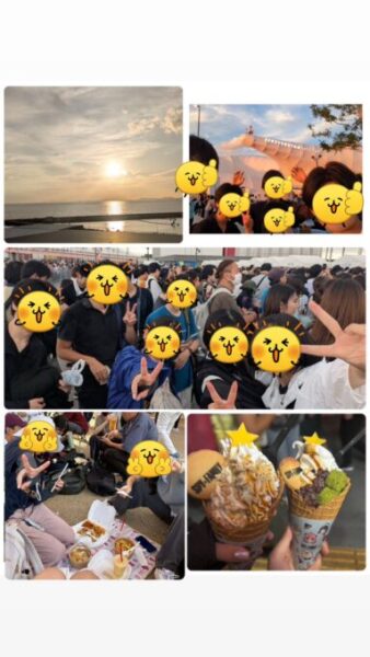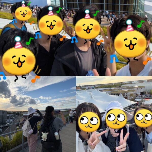 みんなでパビリオンやフードショップの列を並んだり、たくさん歩いたり、お話したりと