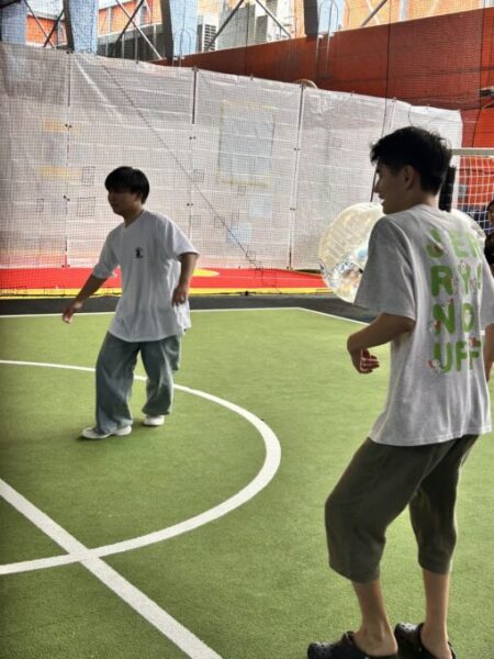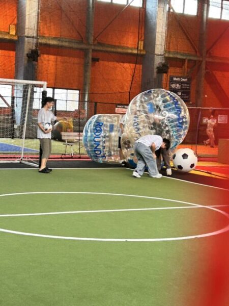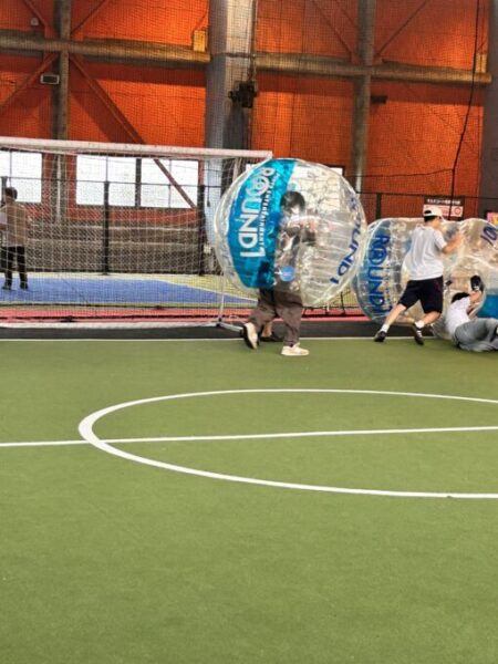 バブルサッカー🎈、初めての生徒さんはドキドキしながらぼよんぼよんと楽しんでます!