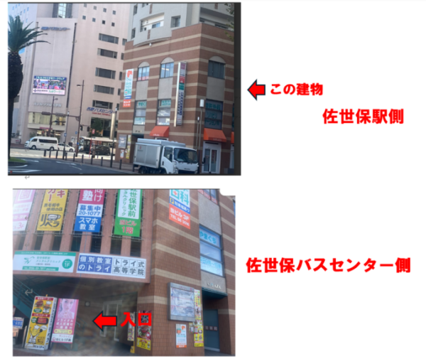 トライ式高等学院佐世保キャンパスの場所をご存じですか??佐世保駅ロータリーに面するエス・プラザという建物の2階に教室があります。