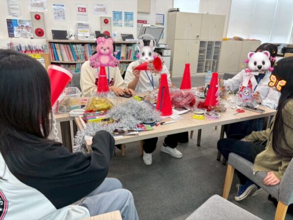 写真は9月26日に開催された体育祭のときに使用するメガホン作りをキャンパスの友達と作っているところです!