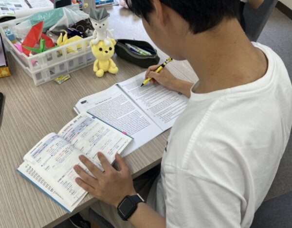 今日の復習や明日の予習、単語勉強など一人で黙々と自習をします。