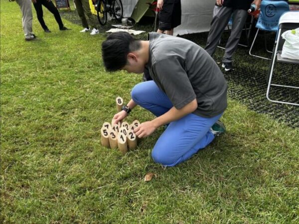 木の棒を使って、得点が書かれている木の棒を倒すゲーム👊