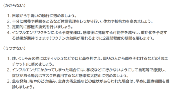 インフルエンザなどの感染症に「かからない」「広げない」ためには、