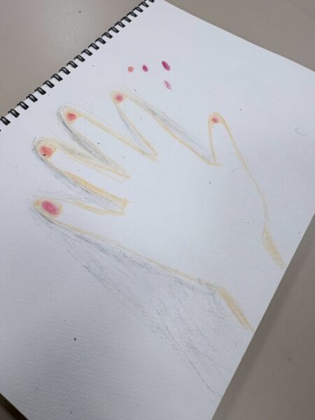 Mさんは手を置いた時の影も描きこみ、