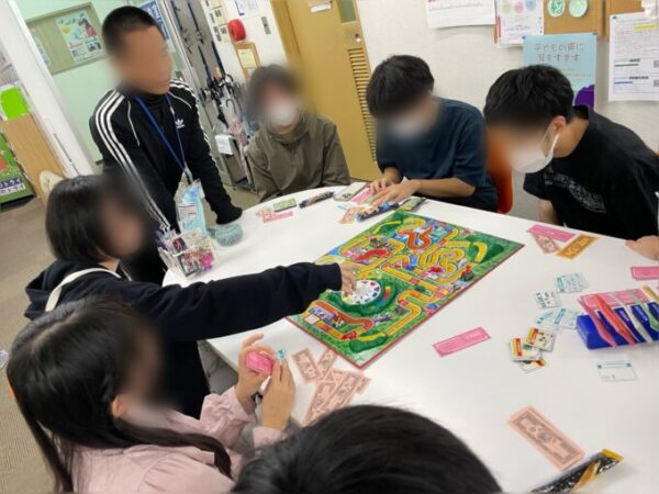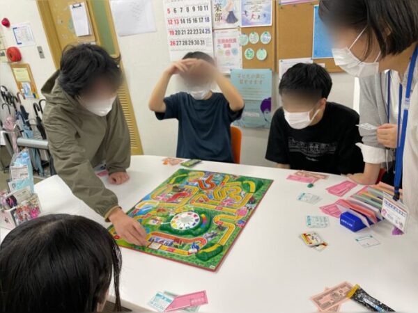 今回は中等部の生徒たち6人が集まって、みんなで人生ゲームをしました。