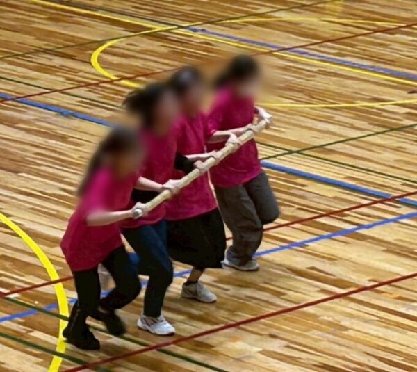 内側の子があまりはやく棒を回すと外側の子が置いて行かれます~💦