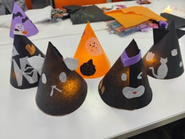 これまでの交流会ではカードゲームをしていましたが、今回は初の試みとしてハロウィンのランプを工作しました!👻