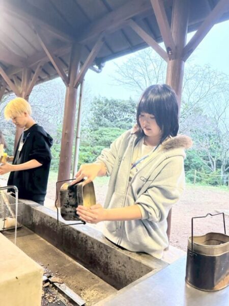 外でクロスワードと野外炊事を行いました…!