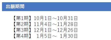 2025年10月3日~2026年1月30日まで、随時出願を受け付けています。