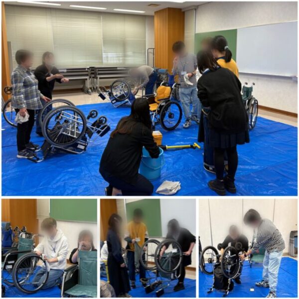 バスの遅れで、私たちは到着が少し遅れてしまいました😿すでに地域ボランティアの方々が作業を始められていたので、私たちも急いで空いてる車椅子を近くによせ、メンテナンスを始めました💪
