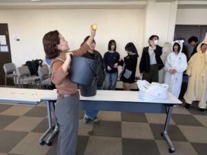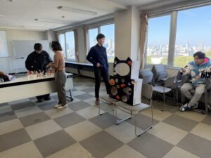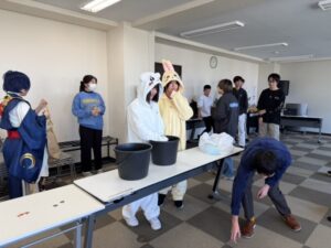 シールを貼ったあとは、中等部サークルのみんなが作ってくれたボール投げゲームに挑戦!