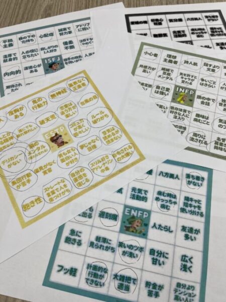 自分のタイプがわかったら、タイプ別の特徴ビンゴをしたり、タイプごとの相性チェックをしたり、生徒さん同士で正確の特徴を分析してみたり、、、と楽しみました。