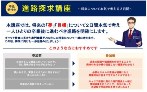 トライ式高等学院では、このように進路に関しての講座も多数ございまず!