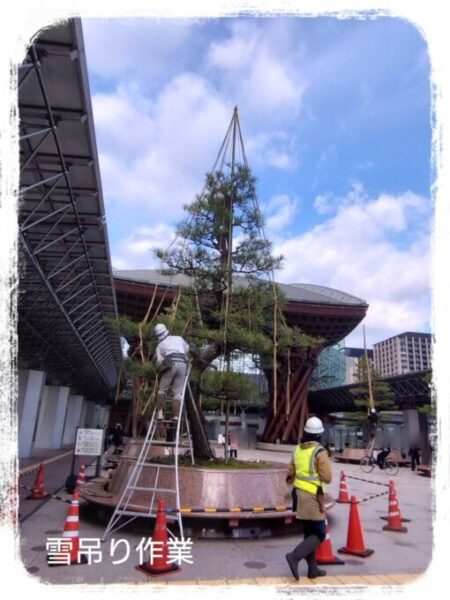 ❄️ 石川県金沢市の玄関口、金沢駅の前で雪吊りの作業が始まっていました。