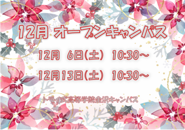トライ式高等学院 金沢キャンパスでは、12月もオープンキャンパスを開催いたします!