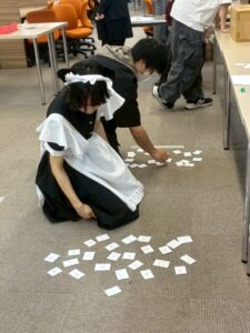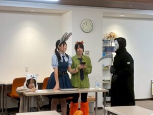 仮装したり、伝言ゲーム、曲あてゲーム、フルーツバスケットやアトラクションゲームをしたりして楽しいひと時を過ごしました(^^♪