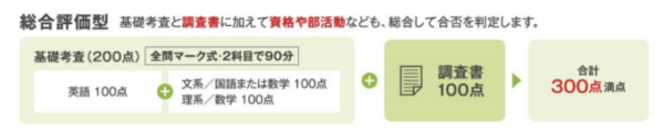 「総合評価型」の場合、300満点中調査書の得点が100点です!!