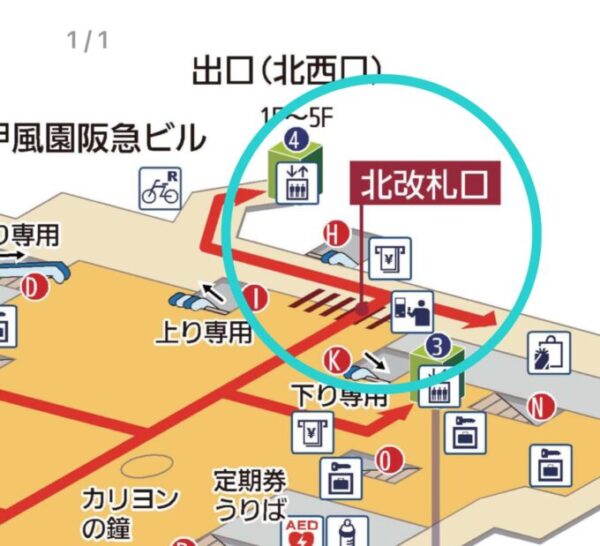 まず西宮北口駅の北改札口から出ます。
