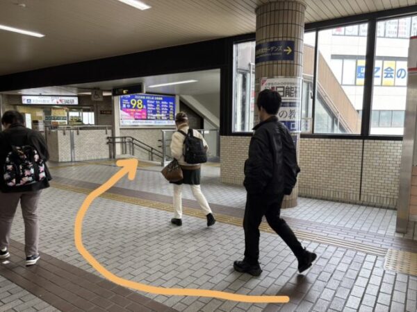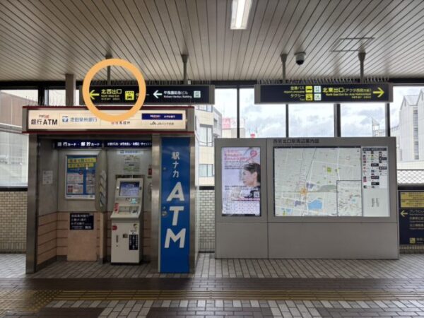 改札出たら目の前にATMと電光掲示板がありますので