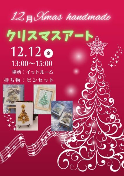次回は12月12日📅こちらも生徒さん発案のクリスマスハンドメイド🎄クリスマスアート🩷