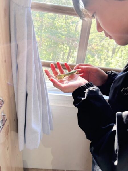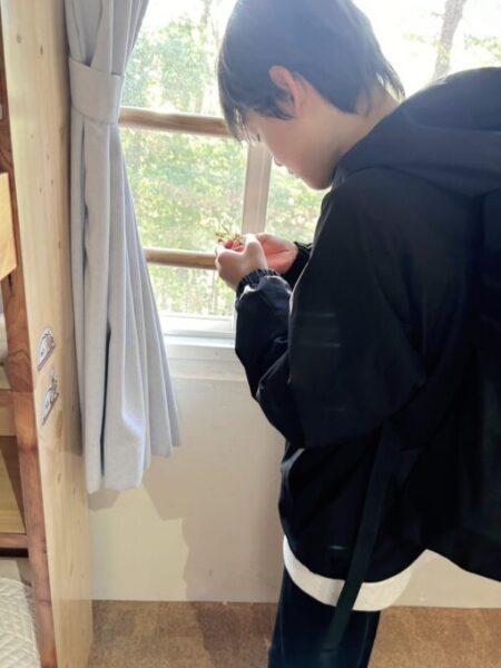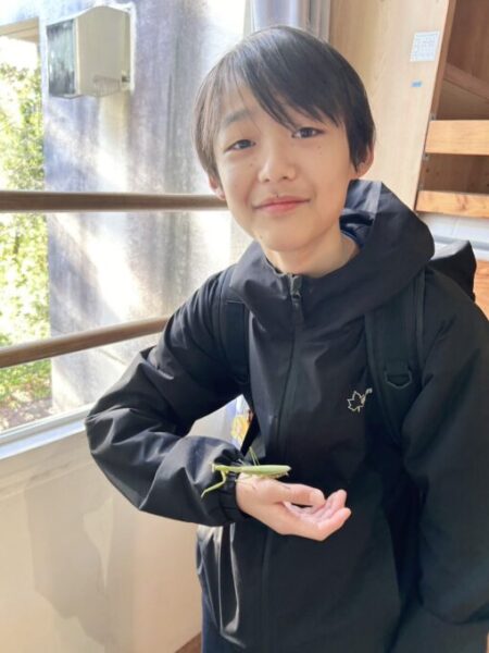 初日から「虫が好き!カマキリが大好き!」と言っていたのをみんなに覚えてもらえていて、窓にカマキリが遊びに来てるよ~!と教えてもらって、ゲットしていました✨