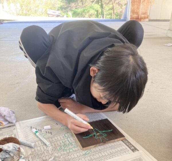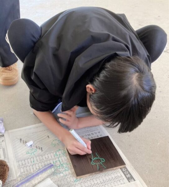 ススが出てこなくなってきたら、次は板に絵をかきます!