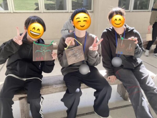 全員完成!!焼き板を持って青空の下で記念撮影★