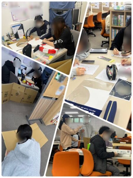 実行委員だけでは人手が足りず困っていたところ、受験が終わった3年生たちが大勢集まって制作を手伝ってくれました!