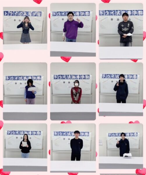 トライの弁論大会では、3つのテーマの中からそれぞれ1つ選んで、3分間で発表します。