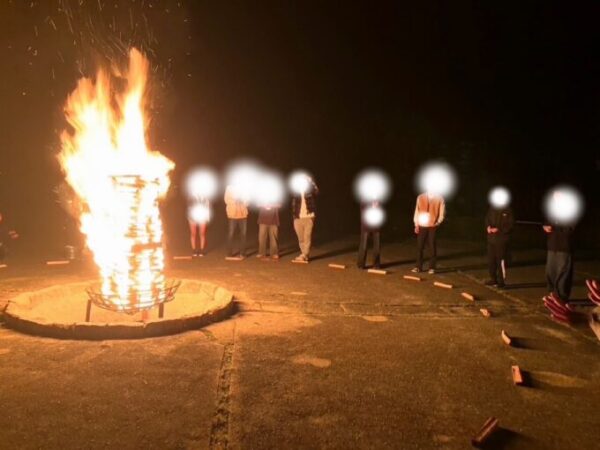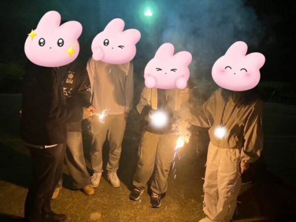 夕食の後はキャンプファイヤー🔥火のやぐらを囲みながらゲームをし、「マイムマイム」を手を繋いで踊り、最後は花火で締め!!