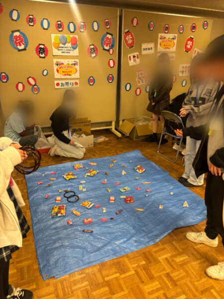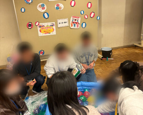 事前にみんなでキャーキャー大騒ぎしながらヨーヨーを大量に作り、輪投げの景品のお菓子もいっぱい用意しました。